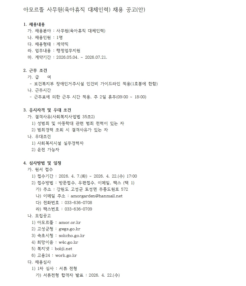 [¾Æ¸ð¸£¶ã] »ç¹«¿ø ä¿ë °ø°í (Ãâ»ê¡¤À°¾ÆÈÞÁ÷ ´ëüÀηÂ)