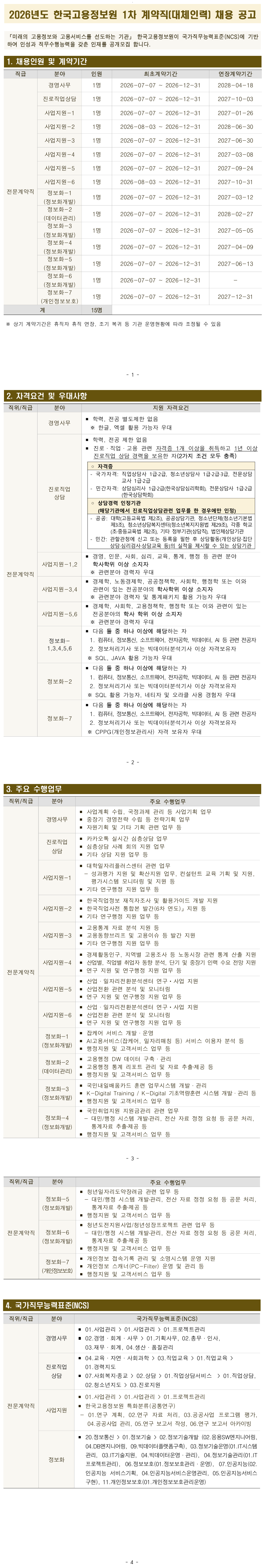 [Çѱ¹°í¿ëÁ¤º¸¿ø] 2026³âµµ 1Â÷ °è¾àÁ÷(´ëüÀηÂ) ä¿ë °ø°í