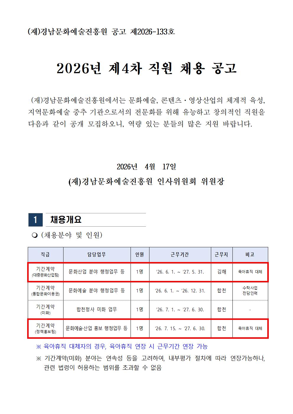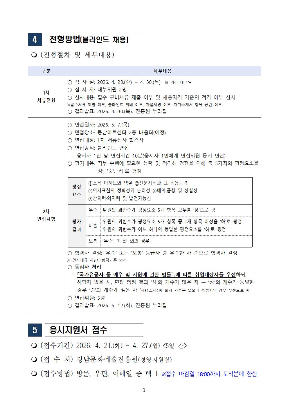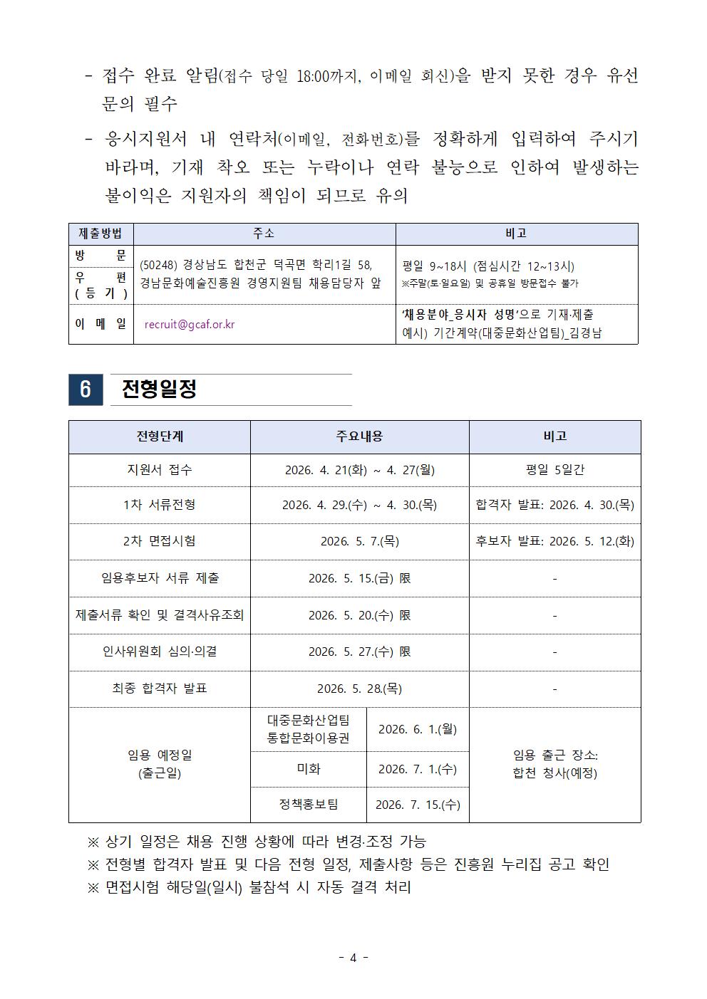 (Á¢¼ö¹æ¹ý) ¹æ¹®, ¿ìÆí = (50248) °æ»ó³²µµ ÇÕõ±º ´ö°î¸é Çи®1±æ 58, °æ³²¹®È¿¹¼úÁøÈï¿ø °æ¿µÁö¿øÆÀ ä¿ë´ã´çÀÚ ¾ÕÀ̸ÞÀÏ = recruit@gcaf.or.kr = ¡®Ã¤¿ëºÐ¾ß_ÀÀ½ÃÀÚ ¼º¸í¡¯À¸·Î ±âÀ硤Á¦Ãâ / ¿¹½Ã) ±â°£°è¾à(´ëÁß¹®È»ê¾÷ÆÀ)_±è°æ³²