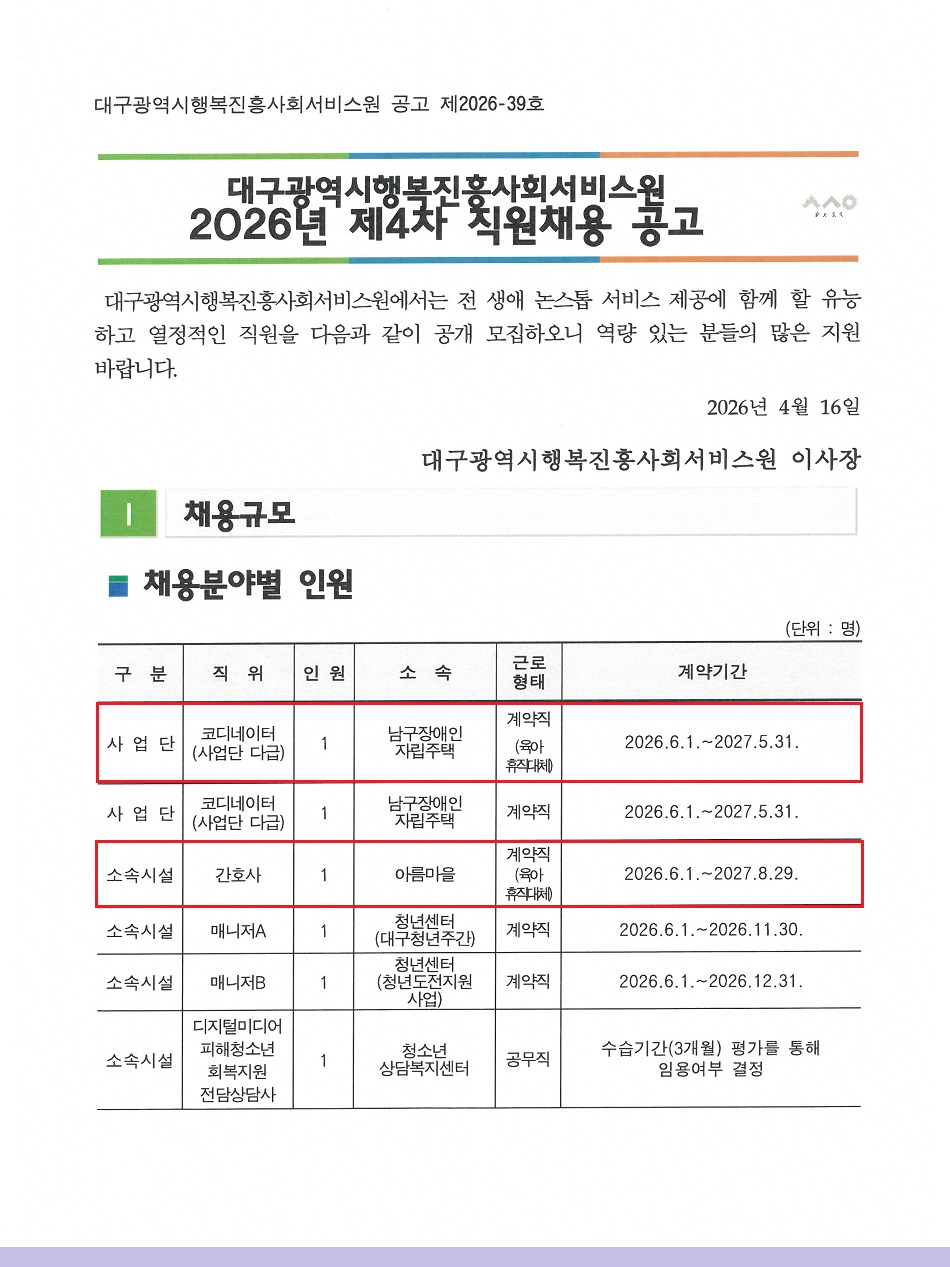 [´ë±¸±¤¿ª½ÃÇູÁøÈï»çȸ¼­ºñ½º¿ø] 2026³â Á¦4Â÷ Á÷¿øÃ¤¿ë °ø°í