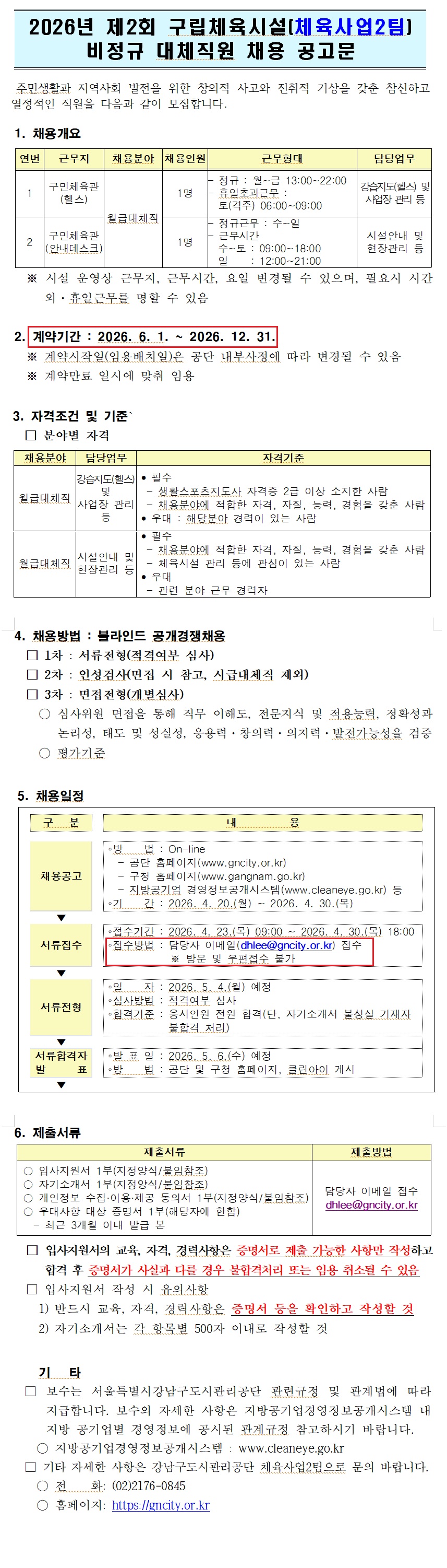 [°­³²±¸µµ½Ã°ü¸®°ø´Ü] 2026³â Á¦2ȸ ±¸¸³Ã¼À°½Ã¼³(üÀ°»ç¾÷2ÆÀ) ºñÁ¤±Ô ´ëüÁ÷¿ø ä¿ë °ø°í¹®