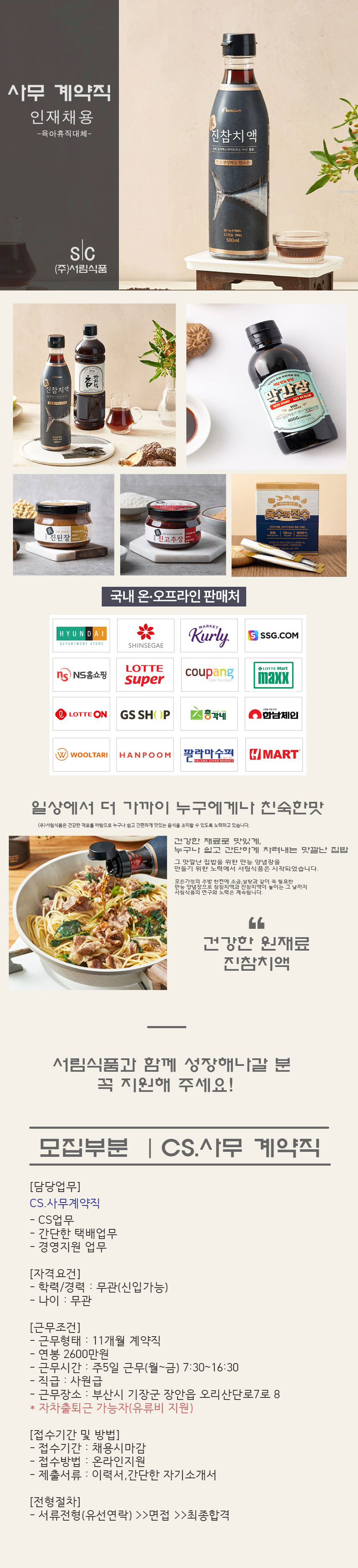 [ºÎ»ê ±âÀ屺] (ÁÖ)¼­¸²½Äǰ CS,°æ¿µÁö¿ø »ç¹«°è¾àÁ÷ ¸ðÁý (À°¾ÆÈÞÁ÷´ëü)